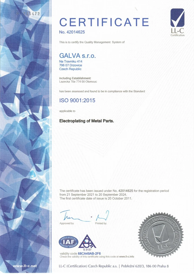 The main parameter for a price calculation is the metallized surface size or the product's weight. Often also the number of pieces hanged on the hinge or the overall contract volume are taken into consideration as well. At a rough guess, the price can be calculated through multiplying 1 dm² of the metallized surface by 2,20 CZK, or 1 kg of galvanized material by 15 CZK. However, we recommend you to always contact us in advance and ask for a price proposal.